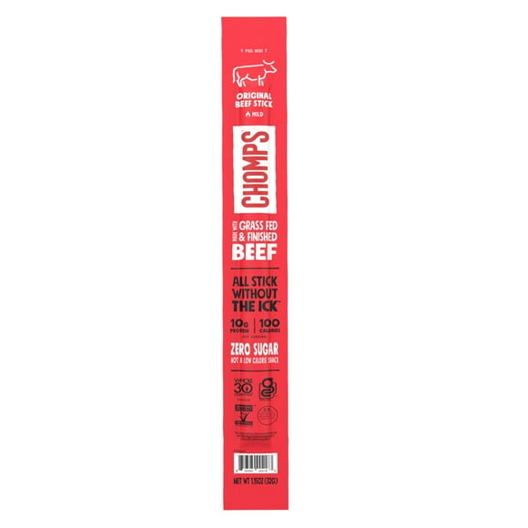 Chomps Grass-Fed and Finished Original Beef Meat Snack Stick, 10g of Protein Chomps Grass-Fed and Finished Original Beef Meat Snack Stick, 10g of Protein