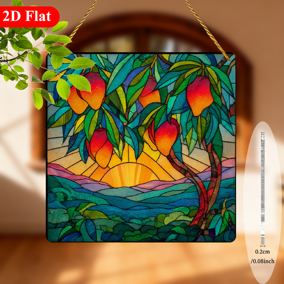 current price $12.552D Flat, 1pc Mango Tree Theme Cute Cartoon Square Suncatcher 8 Inch Window Hanging Decor Plaque for Home Garden Classroom Christmas Birthday Gift