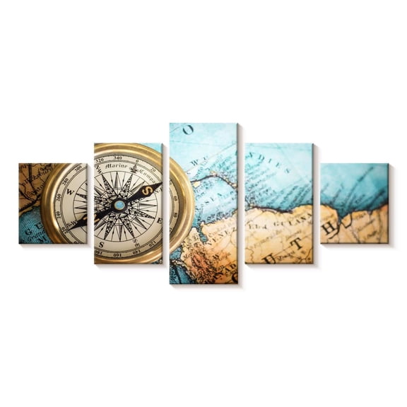 BoxColors - Xlarge 30"x 70" 5 Panels 30x14 Ea Art Canvas Print Watercolor Brown Beige Old Map World Push Pin Travel Wall decor (framed 1.5" depth) M1822 $129.00