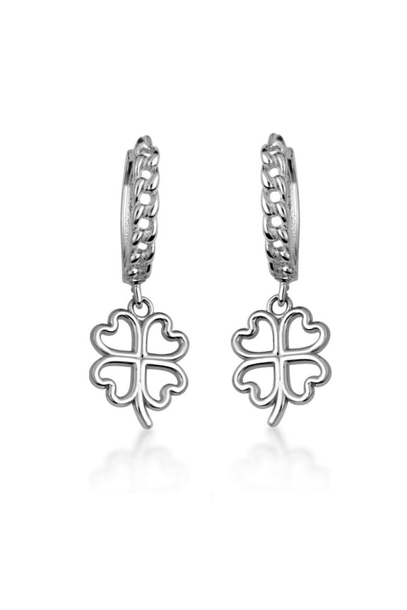 .925 Sterling Silver 4 Leaf Clover Lucky Cuban Link Huggie EarringsSt Patricks Day Shamrock Dangle Earrings 925 Sterling Silver Four Leaf Clover Earrings Irish Jewelry Gifts for Women From $34.99