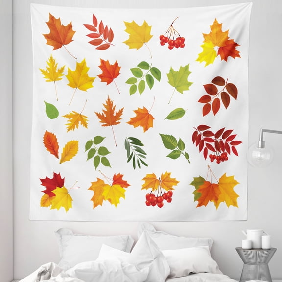 Maple Leaf Tapestry, Colorful Autumn Leaves Different Types Natural Symbol Berries Foliage Artwork, Fabric Wall Hanging Decor for Bedroom Living Room Dorm, 5 Sizes, Multicolor, by Ambesonne