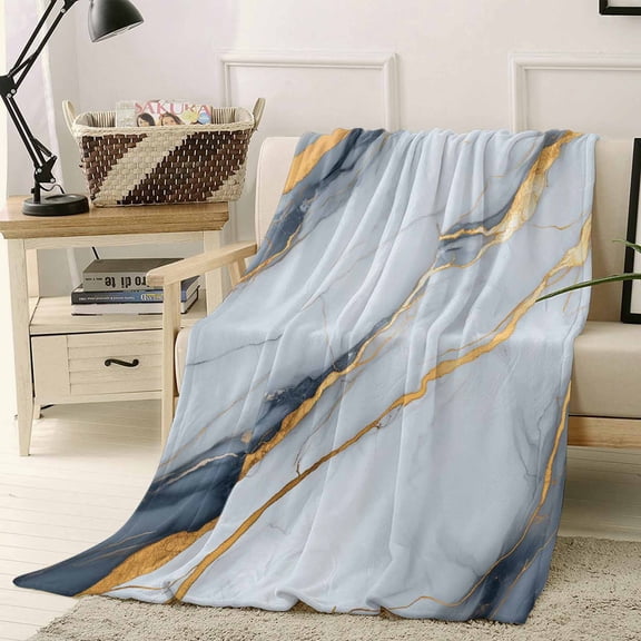Blue Gold Marble Textured Throw Blankets, Abstract Modern Art Soft Fleece Blanket Decorative for Home Sofa Couch Chair Living Bedroom, 40x50 inches, From $21.99