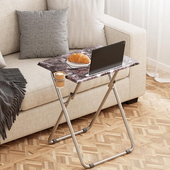 current price $21.99Portable Folding TV Tray/TV Trays Foldable Dinner Snack Trays Table, Portable Foldable Table Small Sofa Bedside Tables with Light Weight, 15 x 18.9 x 26 in(Black Marble)