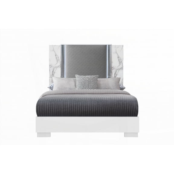 J&M Furniture 17645-K Bianca White & Grey Marble Bed - King Size $1,604.46