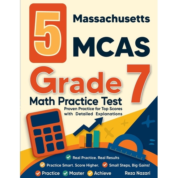 5 Massachusetts MCAS Grade 7 Math Practice Tests: Proven Practice for Top Scores with Detailed Explanations, (Paperback) $19.99