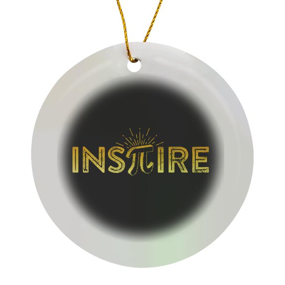 3drose, a Yellow Word Inspire, a Symbol Pi Inside, Funny Pi Day Math Gift, Circle Porcelain Ornament From $14.89
