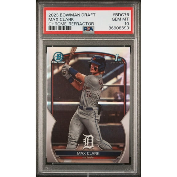 current price $149.98Max Clark Detroit Tigers 2023 Bowman Draft Chrome Refractor Rookie Card #BDC76 PSA 10 Gem Mint