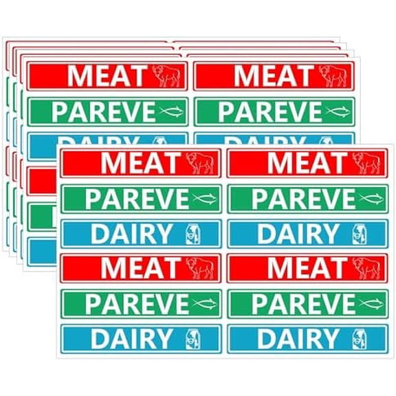 current price $13.78120 Pcs Kosher Labels Meat Dairy Parve Stickers 1.5 x 1/4 inch Blue Dairy Red Meat Green Dishwasher Safe Kosher Label Freezable Microwavable Dishwasher Labels for Koshers Kitchen Use$$Office