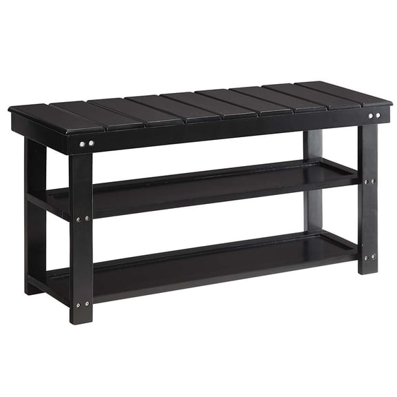 Shoe Bench, Ink Black, Synthetic Leather, Mid-Century Modern, 300 lb Capacity, 11.8" x 39.4" x 19.7", Entryway Storage.