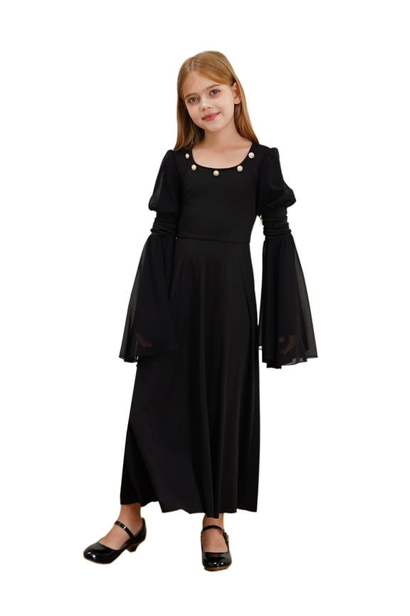 Medieval Princess Dress for Girls Bell Sleeve Maxi Dancewear Victorian Queen Gown Black 10 From $29.08