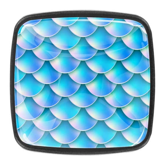 4 Pcs Square Cabinet Handle Cupboard Knob Drawer Pulls Handle Pacific Mermaid Scales Drawer Knobs with Screws Furniture Decoration $20.99