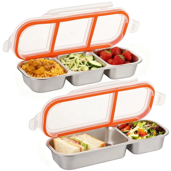 current price $18.99Flantor 3 Pack Stainless Steel Snack Containers, 2 Compartment Metal Bento Lunch Box, Leak-Proof Stackable Meal Prep Containers