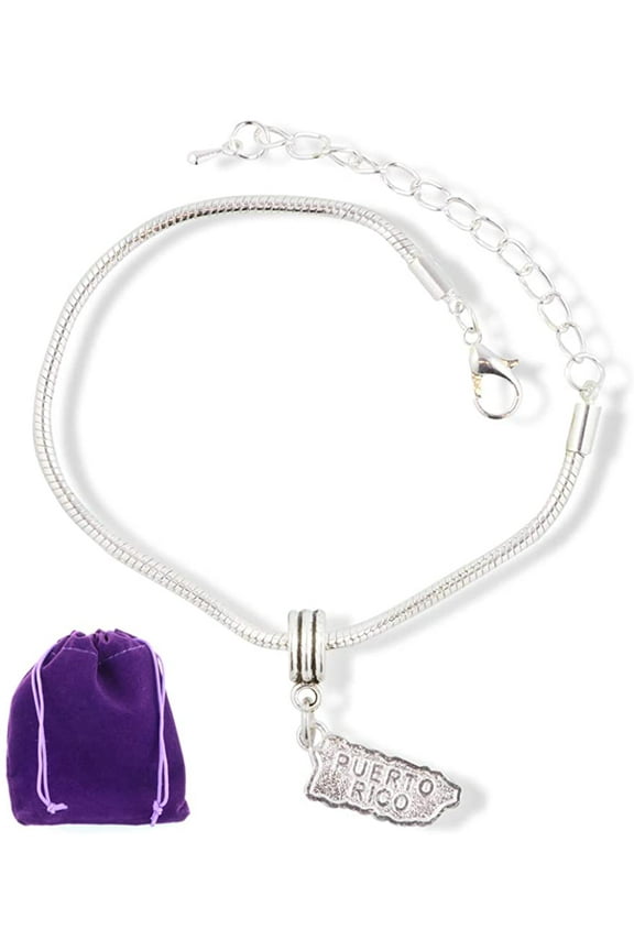 Puerto Rico Bracelet | Puerto Rico Country Map Stainless Steel Snake Chain Charm Bracelet $24.97