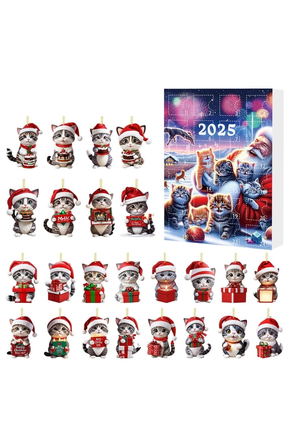 Christmas Advent Calendars 24 Days of Surprise Countdown Gift Box Includes Adorable Cat Ornaments Suitable for Kids and Adults