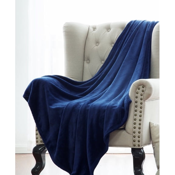 current price $43.74Pemberly Row Polyester Print Microlight Brushed Throw with 1" Self Hem in Navy