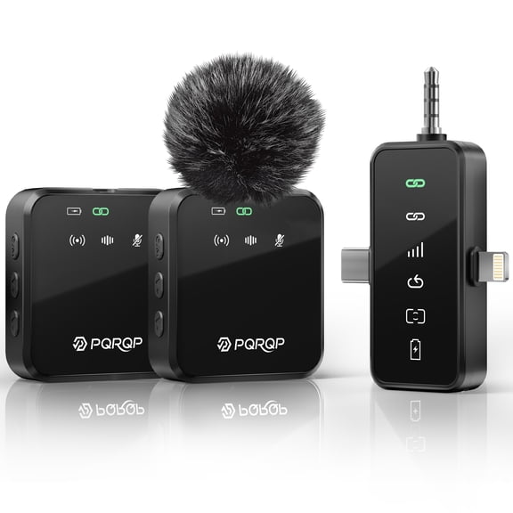 Wireless Microphone for iPhone Android – PQRQP 3 in 1 Lavalier Mic with Noise Cancelling, 328ft Range for Interview Vlog $29.99 Was $59.99