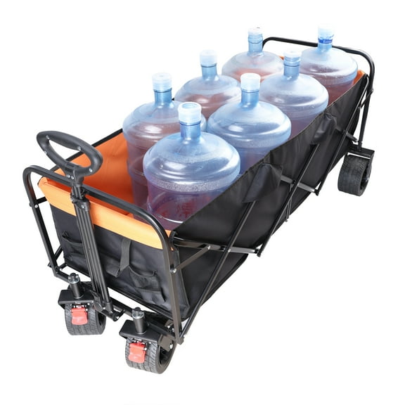 Noaman Extra Large Folding Wagon Cart with 150lb Capacity, 57x24.8x41.3in, Black/Orange