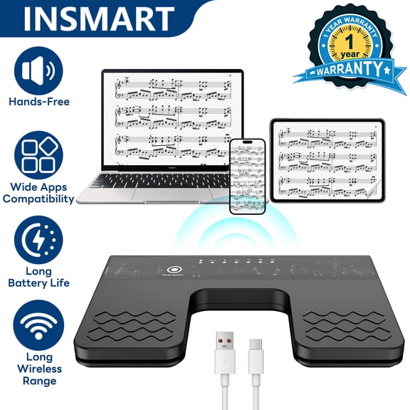 INSMART Bluetooth Page Turner Pedal, Wireless Foot Pedal for iPad Tablets Phones, Hands-Free Rechargeable Music Score Turner with 2.4GHz, 4.7x6.7x1 Inch $34.99 Was $70.99