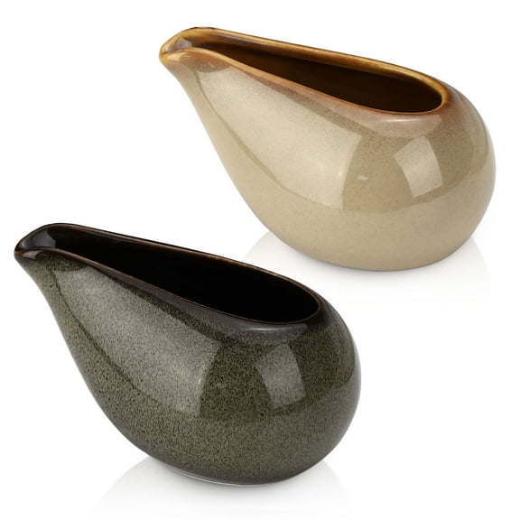 current price $14.992 Pack Fine Porcelain Gravy Boat, 3.5Oz/100 ml Small Ceramic Creamer Container with Spout, Coffee Sauce Milk Pitcher Set for Breakfast Restaurant Home Salad Dressing (Light Brown & Dark Gray)