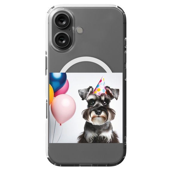 DistinctInk Hybrid Case for iPhone 16 - Slim, Durable, Compatible with MagSafe Charging - Birthday Miniature Schnauzer puppy
