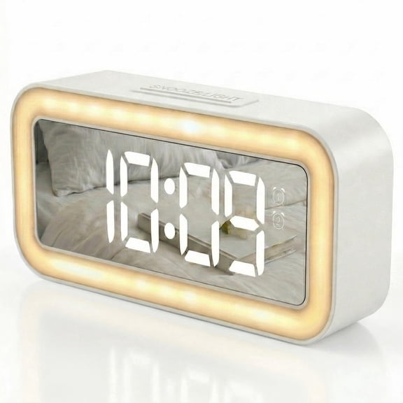current price $16.99Digital Alarm Clock with Large LED Mirror Display, Nap Temperature Night Light & USB Charging Stylish and Functional Wake-Up Companion
