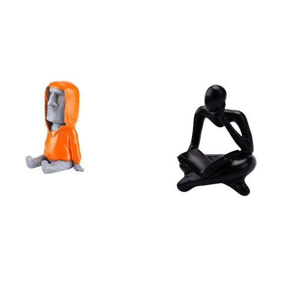 2 Pieces Moai Head Statue Abstract Reader Sculpture Resin Lightweight Tabletop Bedroom Office Shelf Art $30.66