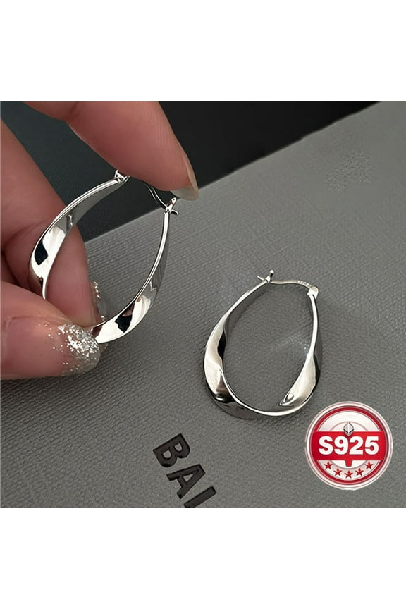 Silver Hoop Earrings, Oval S925 Sterling Silver Hoop Earrings For Women Lightwieght Big Gold Hoop Earrings Hypoallergenic Mobius Hoop Earrings Trendy 14K Gold Plated Hoop Earrings[Z3489]Silver Pro Hoops Earrings for Women,hypoallergenic skin-friendly Oval Sterling Silver Hoop Earrings Lightweight Silver Hoop Earrings oversized design Silver Hoop Earrings for Women[i137] $27.49