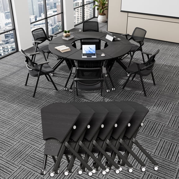 Conference Room Tables, Folding Conference Table with Wheels, Fan-shaped Combinable Modular Training Tables, Foldable Flip Top Mobile Rolling Table for Office Meeting From $1,195.00