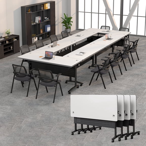 10PCS Conference Room Tables,55.1IN Folding Conference Table with Wheels,White Modular Conference Table,Rectangular Meeting Table for Office School Classroom Library Home From $1,000.00
