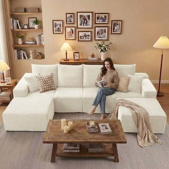 Modern L-Shaped Corduroy Sofa Couch for Home Living Room with Storage and Convertible Sleeper, 118×92×34 Inch$1194.58current price $1194.58Convertible Modular Sofa Bed, White Corduroy Cloud Velvet, 86.6" Oversized 3-Seater, Plush Foam, 3-Piece Set with Ottoman, Perfect for Living Rooms & Apartments