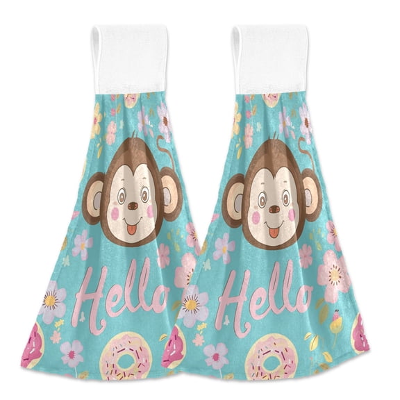 current price $15.992 Pcs Kitchen Hand Towels with Hanging Loops Absorbent Soft Fast Drying Decor Bath Towels Hello Monkey Face