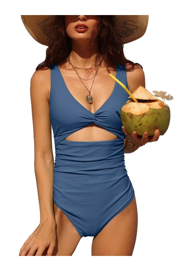 Twist V Neck One Piece Swimsuit for Womens Tummy Control Swimdress Monkini Swimwear Tie Side Mesh Bathing Suits154.5 out of 5 Stars. 15 reviews