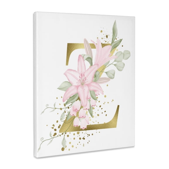 current price $19.993dRose, Pretty Pink Lily Floral Image Of Gold Monogram Initial Z, Museum Grade Canvas Wrap 16x20