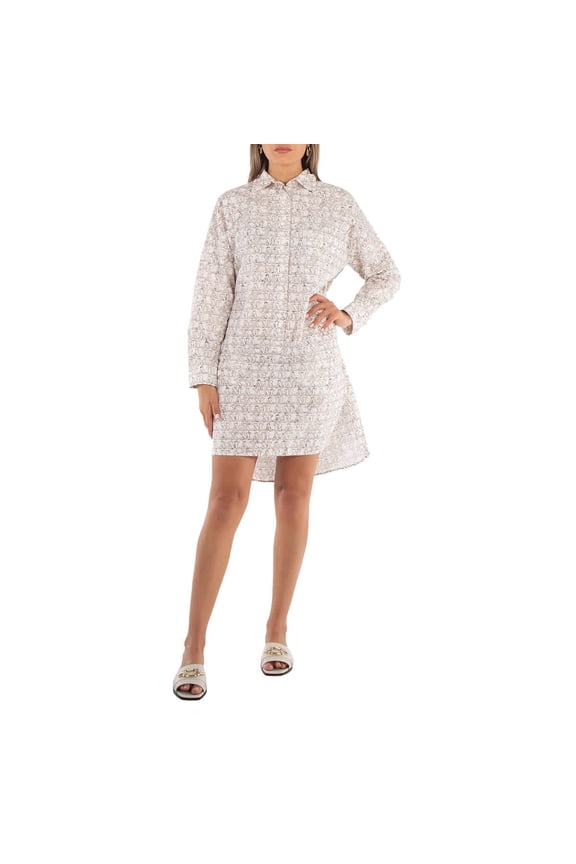 Pre-Owned Nanushka Monogram Print Midi Dress in Brown Recycled PolyesterLadies White Bevanda Monogram Shirt Minidress, Brand Size 38 (US Size 4) From $109.94