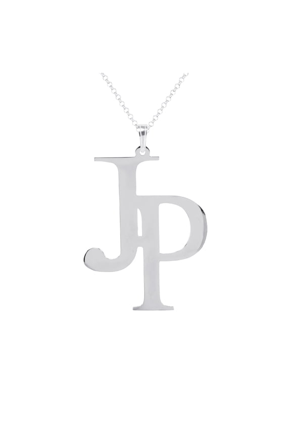 Script Monogram Necklace with 36 inch Cable Chain. 2 inch WidePersonalized Monogram Necklace with Chain Accents in Sterling Silver or 14K Gold Plated Sterling Silver