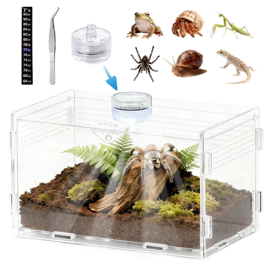 ECOSUB 8" x 4" x 4" Acrylic Reptile Terrarium, Transparent Tarantula Spider Enclosure Micro Breeding Box$17.99current price $17.99Mini Reptile Glass Terrarium Tank 8 * 8 * 6" Full View, Amphibians Box Habitat Enclosure Cage for Frog,Spiders,Dubia Cockroach,Praying Mantis,Cricket,Tarantula,Hermit Crab