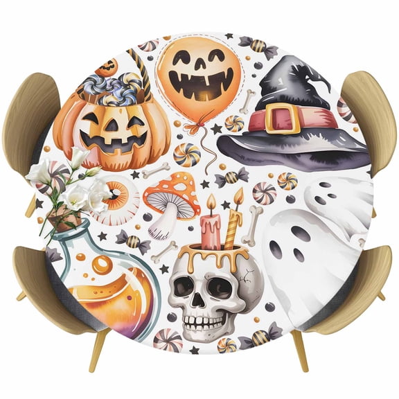 60-Inch Halloween Tablecloth Round - Waterproof Black Spooky Decor for Dining Table, Party Supplies (Nylon-Spandex)$11.67current price $11.67PRETXORVE Oil Resistants Halloween Decorative Tablecloth Circular Digital Printed Tablecloth