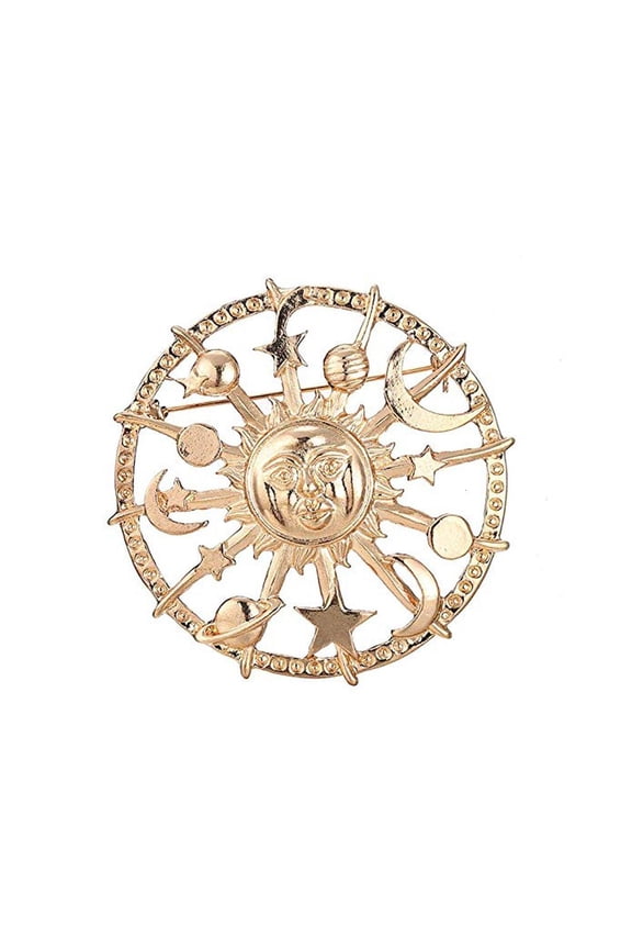 Galaxies Rudder Brooch Round Golden Star Moon for Sun Enamel Pin Jewelry for UniVintage sun god brooch gold alloy badge moon stars decorative pin jewellery $15.99