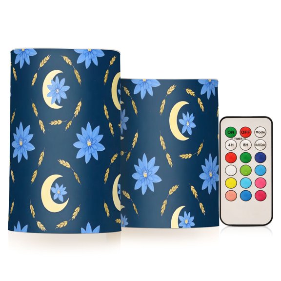 current price $23.99Moon Flower Wheat Pattern Flameless LED Candle Set with Remote, Battery Operated Color Changing Pillar Candles, Set of 2