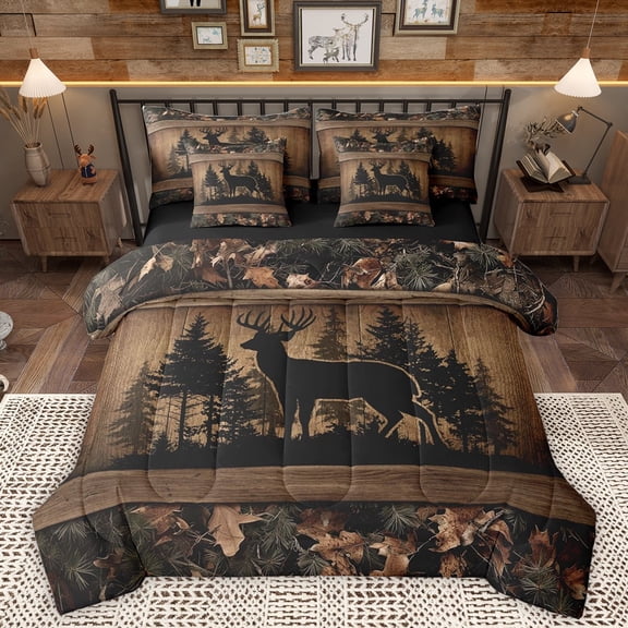 Homewish Wild Deer Elk 7-Piece Twin Bedding Sets,Jungle Animal Bedding Comforter Set,Autumn Fall Leaves Sheet Sets For Boys Kids,Super Cozy Room Decor Reversible From $66.99