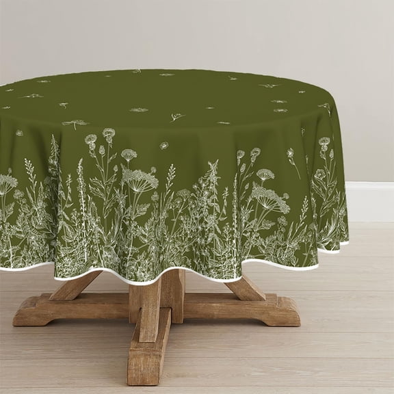 Spring Summer Tablecloth 60×60 Inch Round, Wild Flowers Floral Moss Green Washable Seasonal Table Cover for Party Picnic Dinner Decor From $25.49