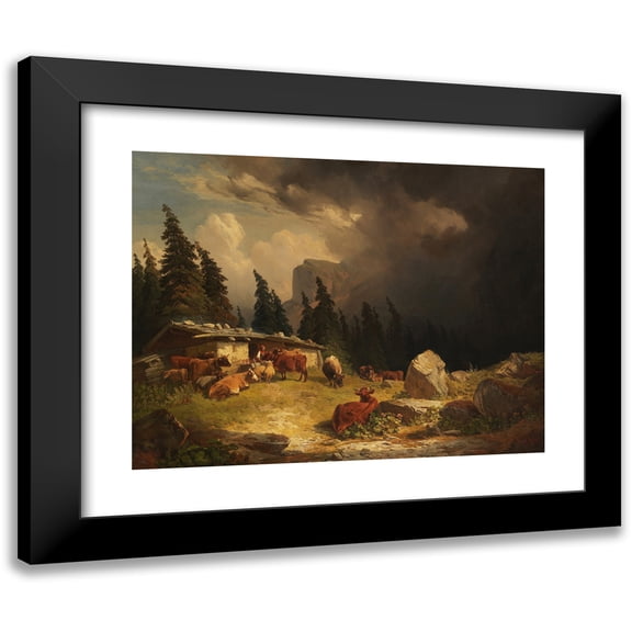 Friedrich Voltz 14x12 Black Modern Framed Museum Art Print Titled - Thunderstorm in the Mountains (1852) From $29.99