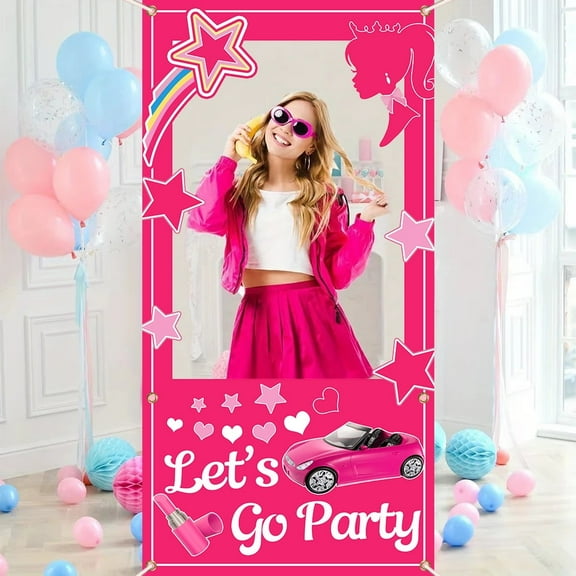 35x71 Inch Lets Go Party Hot Pink Photo Booth Props Decorations Girls Princess Cars Photo Props From $10.99
