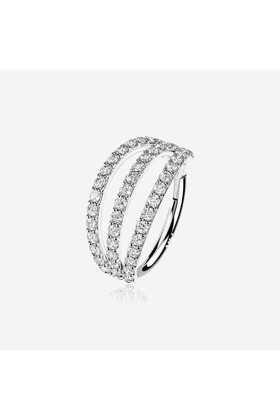14 Karat White Gold Triple Hoop Sparkle Rows Seamless Clicker Hoop Ring0.80 ct. t.w. CZ Multi-Row Vine Ring in Sterling Silver, Women's, Adult