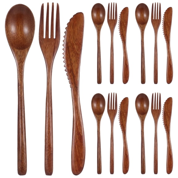 current price $23.9824 Pcs Wooden Utensil Set for Eating, Including Wood Spoon Fork Knife Cutlery, 8.9 in Long Handle, Portable Lightweight Nanmu Tableware for Camping, Picnic