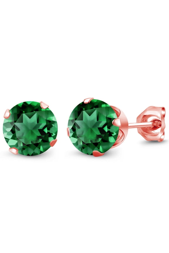 925 Sterling Silver Green Nano Emerald and White Lab Grown Diamond Earrings for Women | 2.88 Cttw | Gemstone May Birthstone | Round 4MM $364.99