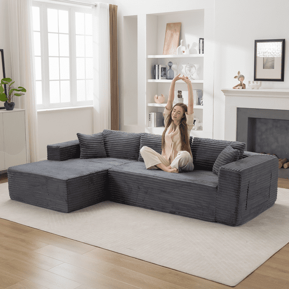 Rollback LUCKHAO 135" L-Shaped Modular Sectional Sofa,Cloud Couch with Chaise,Deep Seat Corduroy Sectional for Living Room & Bedroom,No Assembly Required,Grey From $299.99