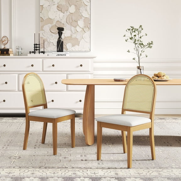 Dayalane Farmhouse Rattan Backrest Dining Chairs Set of 2, Modern Off-white Velvet Upholstered Kitchen Chairs Solid Wood Side Chairs for Kitchen Dining Room Living Room, Nature From $109.98