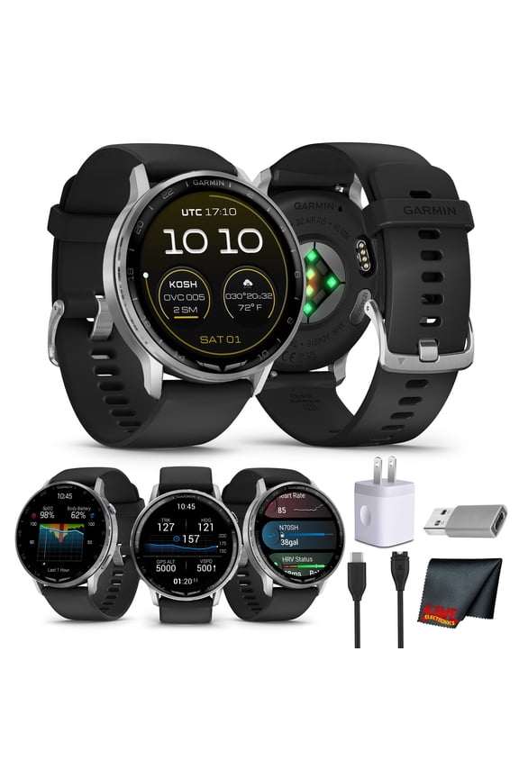 D2 Air X15 Aviation Smartwatch, 45mm AMOLED Touchscreen, GPS Direct-To Navigation, Aviation Weather, Built-In LED Flashlight, Silver Stainless Steel with Black Silicone Band Bundle $662.99