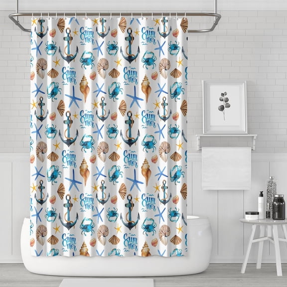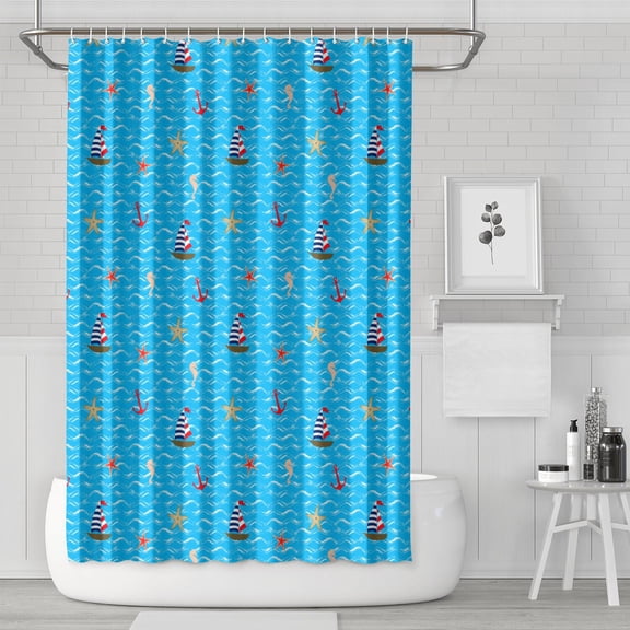Lighthouse & Anchor Shower Curtain - Navy and Marine Themed Bath Curtain with Beacon & Ship Motif - 72x72 Inch Premium Polyester, Fade-Resistant, Machine Washable - Includes Rust-Proof Hooks
